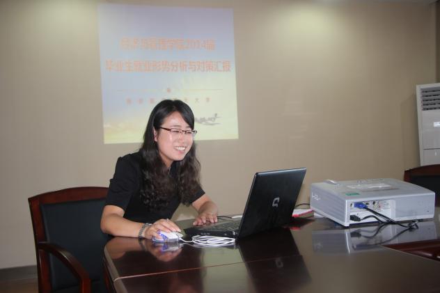 许静首先从外因和内因两个维度分析了2014届国产直播毕业生面临的就业形势,她从就业市场需求大幅减少、人才需求学历结构显著变化、单位对经管类毕业生核心素质要求三个方面阐述了严峻的外部形势,从学院两次毕业生就业意向摸底调研数据,剖析了学生就业观念存在误区、研究生生源质量影响就业层次、女生占比不均衡导致就业难等方面阐述了今年国产直播就业工作存在的困境,提出了重视国防就业市场、积极开拓维护对口市场、提升升学出国率的就业工作方向,并针对学院、系部、班主任专业教师三个层面分别提出了全员全过程参与就业工作的建议。分管研究生教学的张卓副院长从研究生报考指导的角度分析了本科生考研形势,并给出了鼓励考研、关注考研心态等建议。分管本科生教学的朱建军副院长从人才培养质量的角度,建议低年级更加注重人才培养,关注实习实践环节,并号召专业教师利用MBA院友、项目课题等资源促进就业。学院校友会工作负责人罗士礼介绍了学院校友的基本情况,并表示将联系校友资源全力支持就业工作。与会老师们也纷纷献计献策,提出拓展就业渠道、充分借助第一课堂引导学生准确就业定位等建议。最后,周德群院长从近期、远期两个层面提出就业工作的要求,针对14届毕业生的就业困难,他要求大家充分调动各方资源,争取就业机会,加强对就业困难学生的求职技巧培训,同时,他还提出了建设就业基地、完善培养方案、聘任企业研究生导师等长期的促进就业工作的措施。与会领导对促进措施进行了认真细致地讨论,详细商讨了下一阶段就业工作的目标和具体做法。