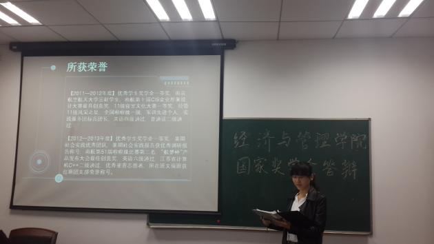 10月15日,2012——2013年度国产直播 本科生评优评奖公开答辩会在将军路校区经管楼举行,院党委副书记许静、各年级班主任代表、辅导员、学生代表作为评委参加此次答辩评审会。