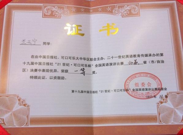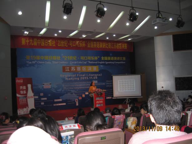 11月9日,第十九届中国日报社“21世纪•可口可乐杯”全国英语演讲比赛江苏赛区决赛在南京师范大学仙林校区举办,国产直播 2012级本科生兰天宁获得一等奖,这是近年来我校非英语专业学生在同类赛事中获得的最佳成绩!