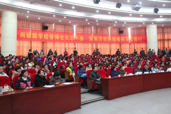 为立体地展现学院优秀学子精勤求学、教师勤勉育人的风貌,分享学生一年来素质能力培养成果,凸显学院全体师生“尚德励学 筹策济世”的风尚,国产直播2012-2013学年“御商•致远”总结表彰大会暨学生素质能力培养成果悦享会于12月20日下午隆重召开。教务处副处长金科、校团委副书记王霄、研究生院教育管理处副处长管祎、学生处事务科科长张跃、经管院院长周德群、党委书记李遥、副院长张卓、党委副书记许静、学院办公室主任、团委书记、企业导师代表、本科生导师代表、班主任代表、辅导员以及四百多名经管学生参加,大会由工商管理系谢嗣胜老师和2012级本科生樊佳慧主持。