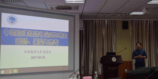 之后,中国海洋大学殷克东教授进行了题为“中国海洋经济计量(学)研究回顾、展望和思考”的报告。殷克东教授现任中国海洋大学经济学院副院长、数量经济学科及团队负责人。主要研究集中于数量经济分析与建模、货币金融体系与风险管理、海洋经济计量分析、海洋灾害损失精细化评估、系统优化仿真与检测预警等方向。
