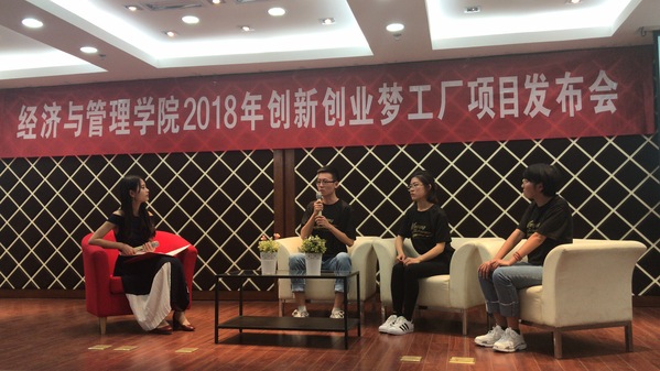 在学院A0305报告厅成功举办创新创业梦工场2018年创业项目发布会,校教务处副处长朱建军,学院副院长邓晶,学院党委副书记涂志宏,学院教授谢乃明、关叶青,校创业孵化中心运营专员奚畅嵘,学院团委书记庞依达,辅导员朱一豪和学院百余位学生共同参加了本次活动。