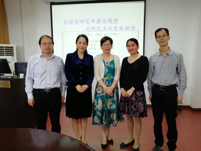 2018年5月3日下午,湖南商学院刘嫦娥教授应国产直播 人力资源管理研究所和江苏省人力资源发展研究基地的邀请,在学院706会议室做了题为“管理学研究中理论模型及研究方法”的精彩学术报告。报告由胡恩华教授主持,张龙教授做了精彩点评,张捷教授、王凌云副教授等老师和研究生参加了这次学术讲座。