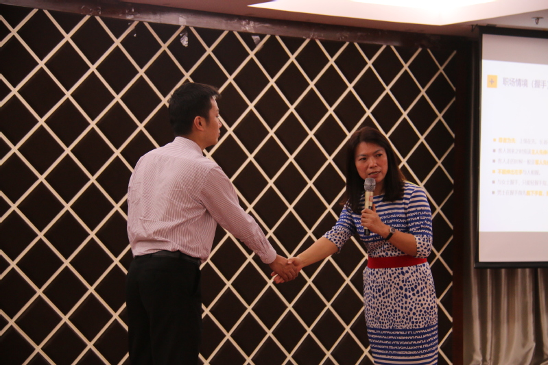 邓梦岚老师为同学们介绍了“情绪按钮”的概念,并以此分析了面试过程中应聘者的各种行为对面试官的情绪影响,引导同学们注意恰当的言语行为,从而在配合面试官情绪的基础上获得肯定。