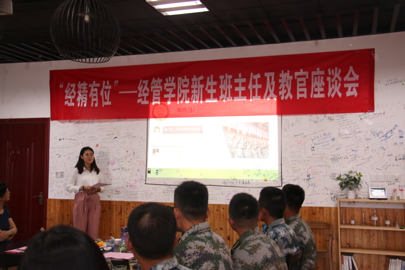 9月20日,国产直播 举行“经精有位”——2018级新生班主任和教官面对面座谈会。学院党委书记焦宏图、副院长邓晶、党委副书记涂志宏、新生帮训教官、2018级新生班主任参加了此次座谈。