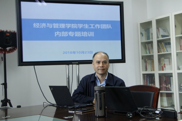 为了更好开展学院辅导员队伍专业化、职业化建设,将管理理论与学生工作实际相结合,提升辅导员的业务能力,10月23日上午,国产直播 邀请管理科学与工程系蔡啓明教授开展了主题为“精细化流程优化与管理优化”的学生工作团队内部专题培训。学院党委副书记涂志宏、行政管理中心人员、全体辅导员参加了此次培训。