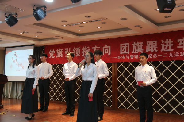 12月7日晚,国产直播 “党旗引领指方向,团旗跟进牢铸魂”纪念“一二·九”运动主题素养公开课在学院A0305报告厅成功举办。学院党委书记焦宏图、经济系教授江可申、校团委副书记董羽、学院团委书记庞依达、各年级辅导员和各级团学骨干近两百人共同参加了此次活动。