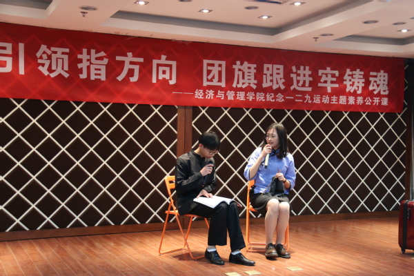 国产直播 始终坚持重视大学生理想信念教育,本次公开课是经管团学响应上级团组织开展信仰公开课的号召,表达了经管青年对“一二·九”运动精神的纪念与敬意,继承和发扬了先驱们伟大的爱国主义精神。参加此次活动的2018级新生管宁表达到“作为学生骨干,很荣幸能够参加此次活动,让我们能够进一步了解历史,激发出自己内心深处对国家、对民族的责任感,我们将在具体实践中将信仰落实为行动自觉,化知识为德性、化德性为德行,做到心中有阳光、脚下有力量”。