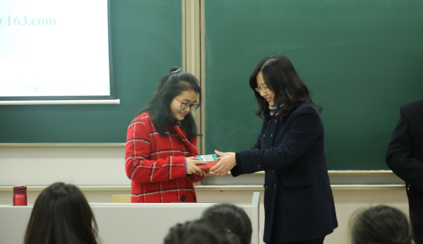 焦宏图为马永远老师送上了学院精心准备的“金嗓子喉宝”和“经管定制优盘”,她叮咛马老师初上讲堂要保护好嗓子,用最美的声音传道授业解惑,并记录教师职业生涯的美好点滴。随后,学生代表为马老师献花,在同学们热烈的欢迎中,马永远老师的开启了教学生涯“第一堂课”。