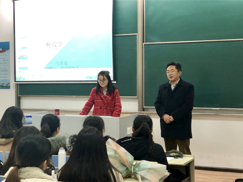 当天上午,在2017级会计学专业的《税收学》课前,周德群向同学们介绍了马永远老师的学习经历、科研经历等基本情况;作为西安交通大学、香港城市大学联合培养的博士,马永远在求学期间成绩优异,发表多篇高质量论文,科研成果丰硕,多次获得各类奖学金,2018年博士毕业后应聘至国产直播 工商管理系任专业教师。周德群建议同学们积极向马老师请教、学习,在夯实基础学业的同时,培养科研兴趣,尝试进行学术研究。他也勉励马永远老师尽快完成从学生到教师的角色转变,潜心教学,将教授课程打造成学生喜欢的“金课”。