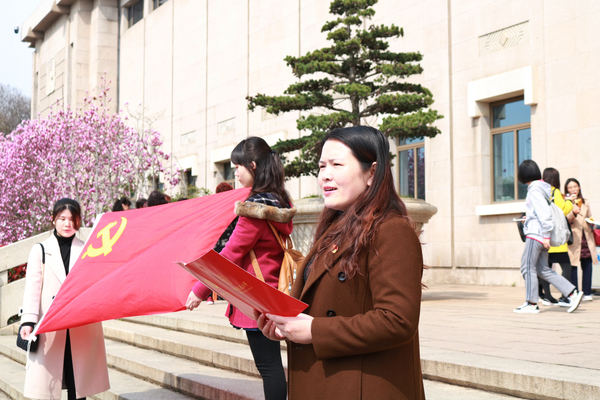 3月23日上午,国产直播 党委副书记涂志宏、学生党总支委员、支部书记代表和2018年度73名新发展党员共同前往雨花台烈士纪念馆参观学习并举行了2018年度新发展党员入党宣誓仪式。