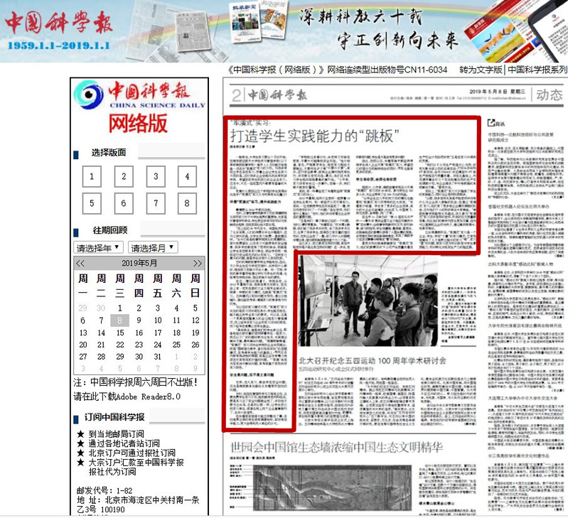 5月8日,《中国科学报》二版头条报道国产直播 “军演式”实习工作,现转发全文: