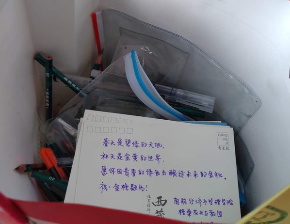 随着第一位考生出现在大众的视野内,文具收集的活动正式拉开帷幕。大多数听了活动介绍的考生,都满脸笑意地将文具投入收集箱内,学长学姐们也将写满真挚祝福的明信片送到了每一位考生的手上。“捐献文具,远比撕书来的有意义”,高三学生的脸庞仍然稚嫩,但对于这个社会,他们也有了最初的一份责任感。