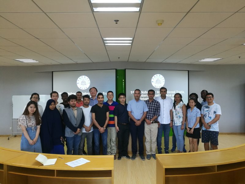 Hashim Zameer有着丰富的研究经验,他本次的演讲主题是“国际市场营销研究”,他为大家介绍了目前国际营销领域的研究情况,以及如何选择该领域的论文研究方向。周小勇的演讲题目是“信息和通信技术如何推动碳排放:基于中国的行业层面分析”,他将通信技术和碳排放相结合的创新研究引起了同学们的兴趣。值得一提的是,Sharafat Ali和Saad Ahmed Javed的演讲不约而同地选择了中美贸易战这一背景,Sharafat Ali的演讲着重点在于解决冲突的战略,Saad Ahmed Javed则着眼于货币和银行行业的格局变化。最后一位嘉宾Elizabeth Narkie Aboah的研究领域是国际贸易,她在研讨会上和大家分享的主题是“非洲的外商直接投资与经济增长”,探讨了近几年非洲经济增长情况和外商投资之间的关系。