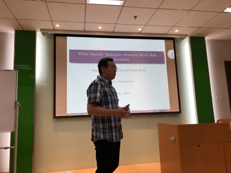 最后,教授Jingyuan Li分享了和新加坡国立大学博士Liu Dongri、国产直播副教授王建立等合作的关于投资者风险脆弱性和模糊厌恶偏好的最新工作论文“When Smooth Ambiguity Aversion Meets Risk Vulnerability”。Jingyuan Li目前是香港岭南大学金融与保险系主任,终身教授,曾担任《Journal of Risk and Insurance》等期刊编委,其研究成果已发表在《Journal of Economic Theory》,《Journal of Risk and Insurance》,《Journal of Mathematical Economics》、《Journal of Macroeconomics》等高水平期刊上。
