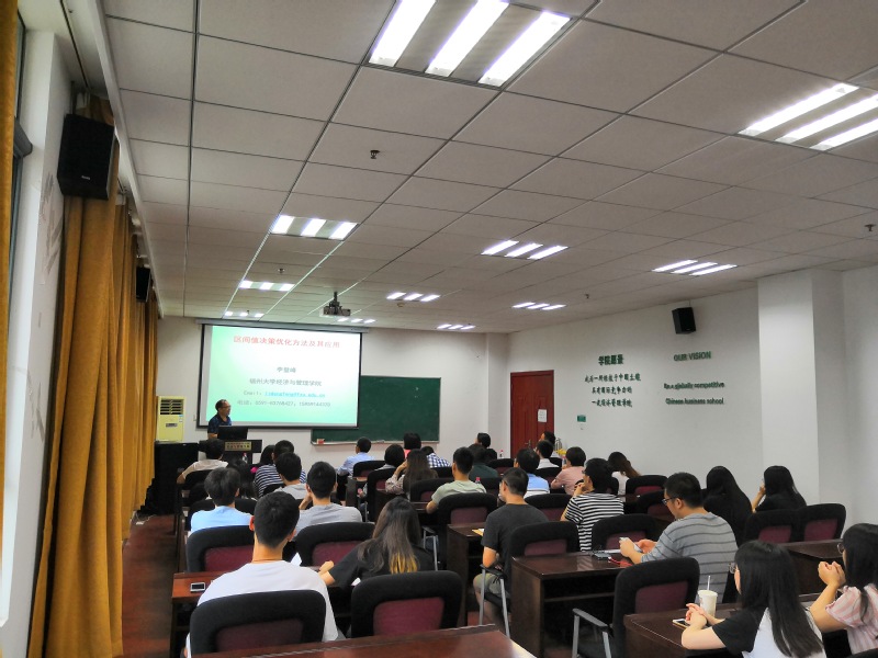 2019年9月5日上午,电子科技大学教授李登峰受学院智能决策与风险分析研究所邀请,在南航将军路校区国产直播 704作了题为“区间值决策优化及其应用”的讲座。学院教授朱建军、教授徐海燕、教授何沙玮等教师及部分硕、博研究生现场聆听了李登峰的报告,本次学术报告由徐海燕主持。