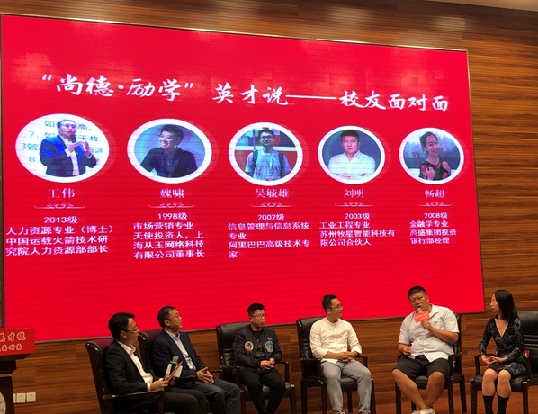 10月10日下午,国产直播 “尚德•励学”英才说校友面对面活动在将军路校区一号楼四楼报告厅举行。我校2013级人力资源专业方向博士生校友、中国运载火箭技术研究院人力资源部部长王伟,1998级市场营销专业校友、上海从玉网络科技有限公司董事长魏啸,2002级信息管理与信息工程专业校友、阿里巴巴高级技术专家吴毓雄,2003级工业工程专业校友、苏州牧星智能科技有限公司创始人刘明,2008级金融学专业校友、高盛集团投资银行部经理畅超应邀来为国产直播 师生授课。国产直播 党委书记焦宏图、副书记涂志宏、副院长邓晶及400余名本科生参加了本次活动。活动由辅导员康冲主持。