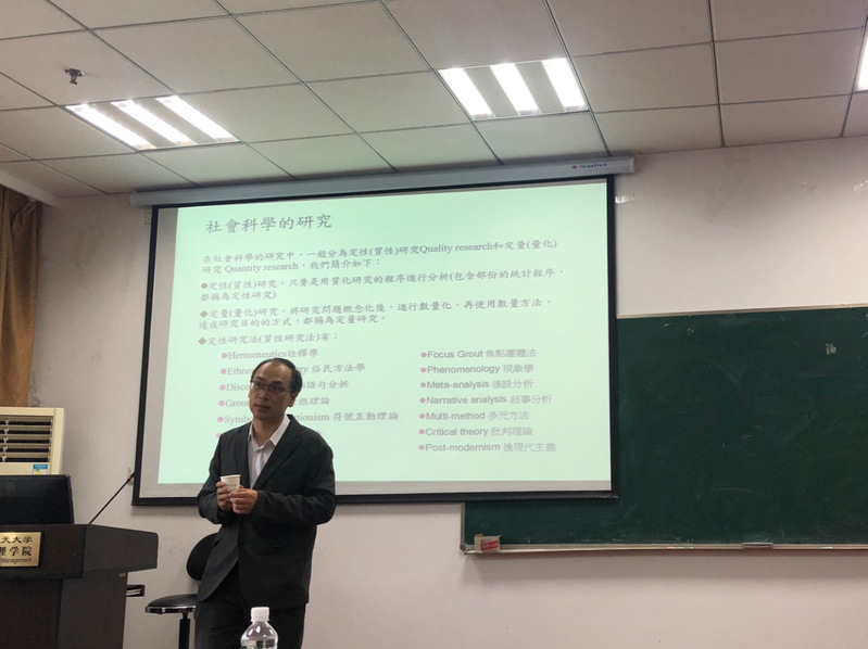 在本次讲座中,萧文龙首先介绍了社会科学研究中的定性和定量方法,简要介绍了结构方程模型(SEM)的进化过程,并讲述定量研究方法在信息管理领域研究中的角色。