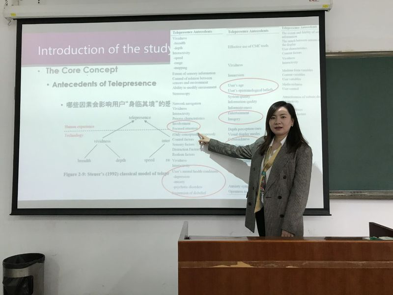 10月14日上午,南开大学商学院信息资源管理系讲师张丹老师应国产直播 信息管理与电子商务研究所邀请,在国产直播 704会议室作了题为“虚拟环境中用户‘身临其境’感觉的探索性研究”的精彩学术报告。报告由讲师肖琳主持,副教授宋连莲、讲师刘文龙等老师及部分硕士、博士研究生参加了本次学术讲座。