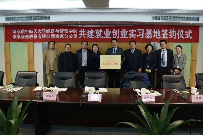 与华泰证券南京分公司举行了大学生就业创业实习基地签约仪式。学院副书记涂志宏、副院长邓晶、金融专业学科负责人段进东教授、工商管理学科负责人陈万明教授、学生辅导员代表以及华泰证券南京分公司总经理王延胜、止马营证券营业部总经理储东兵等共同参加了本次活动,并就大学生的就业创业、实习实践和人才培养等方面开展了深入座谈,积极探索建设校企协同育人新模式。