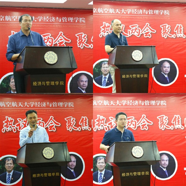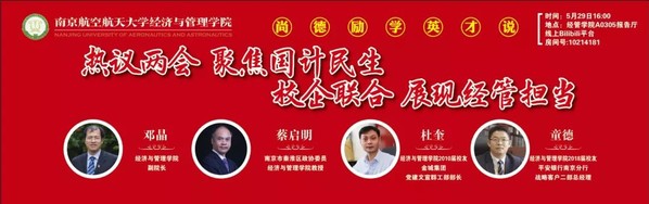 5月29日下午,国产直播 于A0305 报告厅举行“尚德·励学”英才说校友师生共话两会活动。学院副院长邓晶,南京市秦淮区政协委员、管理科学与工程系教授蔡启明,我校2010届校友、金城集团党建文宣群工部部长杜奎,我校2018届校友、平安银行南京分行战略客户二部总经理童德,共同围绕“热议两会,聚焦国计民生;校企联合,展现经管担当”主题与学院师生展开交流讨论。