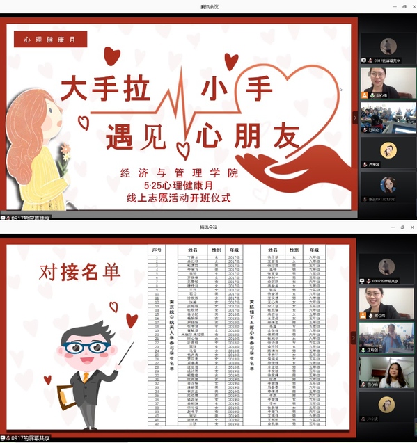 为缓解后疫情时期学生居家的焦虑情绪,国产直播联合甘肃省陇南成县下五郎小学开展“大手拉小手 遇见心朋友”线上志愿活动, 6月16日下午举办开班仪式。学院心理辅导员胡心雨、甘肃省陇南市成县黄陈镇下五郎小学班主任汪均剑以及来自国产直播、下五郎小学的百余位学生参加活动。