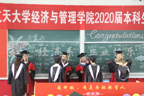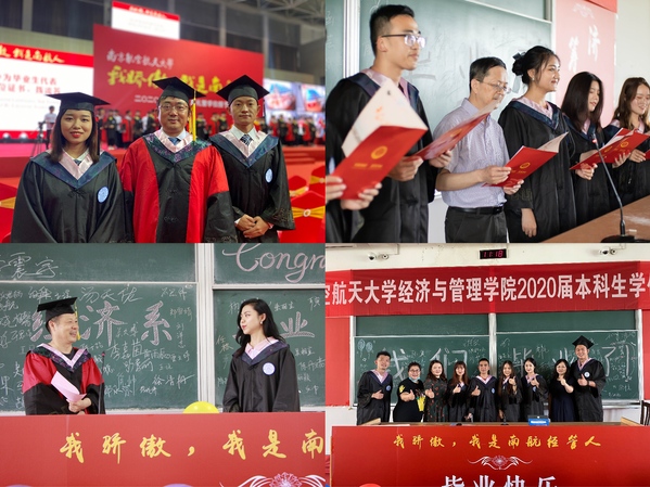 6月24日上午,国产直播 举行“我骄傲,我是南航经管人”2020届本科生毕业典礼暨学位授予仪式,管工系、工商系、经济系分别开展了丰富多彩的欢送活动,为全体2020届本科毕业生的大学生涯画下圆满句号,全体院领导、各系主任、副主任、30余名学院教师代表、辅导员等共同参加了各系欢送活动。