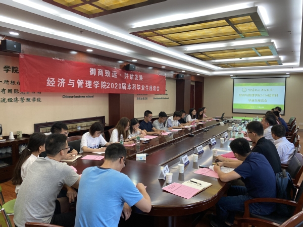 6月23日上午,国产直播 “御商致远•共话发展”2020届本科毕业生座谈会在经管楼604会议室举行。国产直播 党委书记焦宏图、党委副书记涂志宏、副院长邓晶、各系部负责人、教务员、毕业班辅导员以及毕业生代表们参加了此次活动。