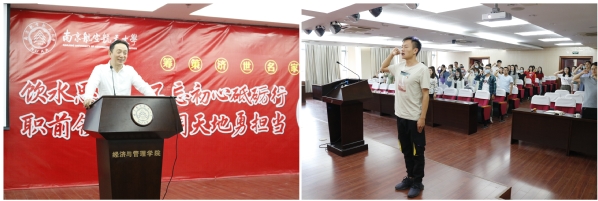 院党委副书记涂志宏勉励同学们要秉承“尚德励学,筹策济世”的责任担当,汲取讲座中蕴含的人生智慧,在未来的工作学习中不负青春使命,立志今后成为像康总一样优秀的南航经管人。在毕业生党员代表董鑫凯带领下,全体党员一同重温入党誓词,牢记初心使命。