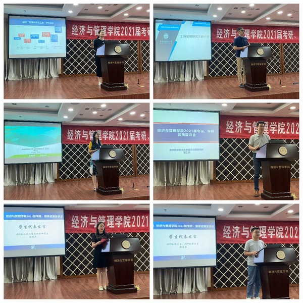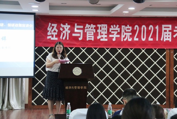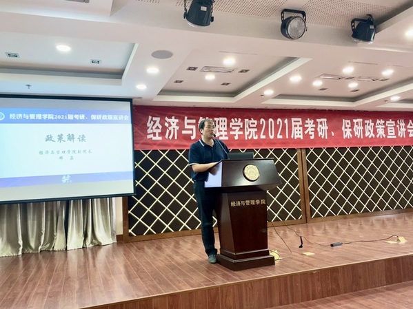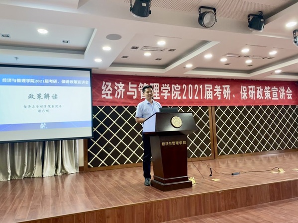 为了帮助2021届毕业生了解国产直播 研究生招生政策,合理规划考研、保研目标,提升学院生源质量,8月27日,国产直播 在A0305报告厅开展2021届考研、保研政策宣讲会。国产直播副院长邓晶、谢乃明,党委副书记涂志宏,管工系系主任马静、副主任虞先玉,工商系副主任刘文龙,经济系副主任查冬兰,辅导员及百余名2017级学生参加了本次活动。