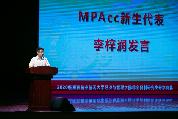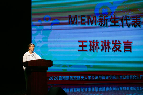 2020级MBA学生陈权全、MEM学生王琳琳、MPAcc学生李梓润代表全体新生发言。陈权全表示,南航MBA“培养学有专攻、富有远见、高尚敬业的中高层管理人才和创新创业精英”的培养目标吸引了他,1号楼闪闪发光的校名始终激励着他,希望身处内外部环境巨变中的同学们在研究生学习期间一起努力,能够抓住一切可以提升自身能力的机会,从知识、眼界、待人接物各方面提升自己的综合素养,努力践行“严谨务实作风、全面过硬素质、笃定高远志向”的MBA使命,最终都能成为自己所在行业的领航者。本科毕业于国产直播-国产黄色直播 机电学院的王琳琳对20年后能够以学生身份重返南航校园倍感荣幸,非常珍惜这段难得的学生时光,希望在3年后能够收获一个不一样的自己,成为母校的骄傲。李梓润对未来的研究生生涯充满希翼,希望大家携手并进,扬帆起航,为自己的人生谱写新的华章。