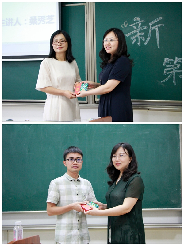 焦宏图为两位老师送上了学院精心准备的“金嗓子喉宝”和“经管定制优盘”,她叮咛老师们初上讲堂要保护好嗓子,用最美的声音传道授业解惑,并记录教师职业生涯的美好点滴。