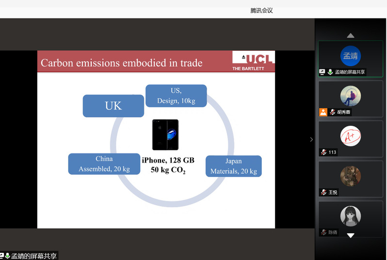 9月7日,伦敦大学学院助理教授孟靖应国产直播 能源经济软科学中心邀请,在线上为我校师生作了一场“国际贸易与碳排放”的精彩学术报告。报告由青年教师胡秀蓉主持,教授查冬兰、张钦、青年教师、博士研究生、硕士研究生等近百余人参加了本次学术讲座。