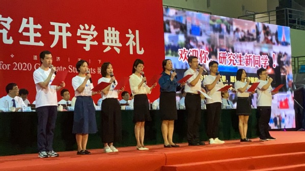 9月4日,在学校研究生开学典礼上,学院徐海燕老师代表校五好导学团队导师参与了“研途路上,我想对你说”诗音画节目,将研究生学习生活路上的点滴讲述给全校20级新生同学,展示了国产直播胸怀博爱济苍生、赤诚相助承大业的胸襟和气度,以及科研团队和谐有爱、亦师亦友的科研氛围和团队风貌。