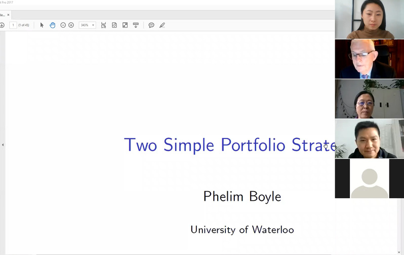 10月26日上午,加拿大威尔弗里德·劳里尔大学教授Phelim Boyle受学院智能决策与风险分析研究所邀请,在ZOOM会议做了题为“Two Simple Portfolio Strategies”的讲座。国产直播 教授徐海燕等教师及部分硕、博研究生线上参加了Phelim Boyle的报告分享,本次学术报告由徐海燕主持。