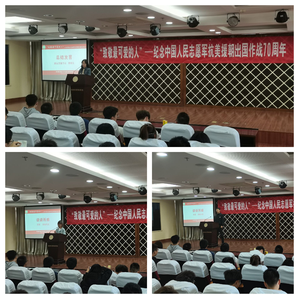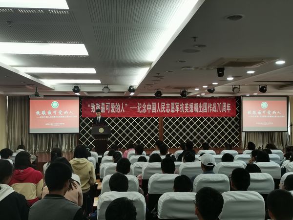 10月23日上午10时,国产直播 2020级团总支“致敬最可爱的人”——纪念中国人民志愿军抗美援朝出国作战70周年素养公开课于A0305顺利举办。活动会场内座无虚席,气氛庄严。