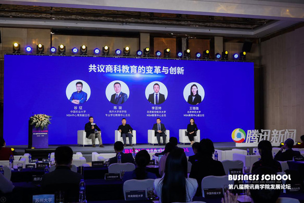 由腾讯新闻主办的2020第八届腾讯商学院发展论坛于11月12日在北京成功举办,国内众多知名商院院长、主任,权威机构负责人以及资深财经媒体人齐聚一堂,以“后疫情时代 商科教育的数字化转型”为主题,共同探讨中国经济以及中国商学院在新时代下的创新发展。经管院副院长王子龙、MBA中心执行主任杜刚、MBA中心招生主任徐倩应邀出席论坛。
