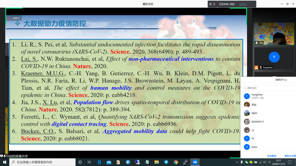 11月12日上午,国防科技大学系统工程学院教授吕欣受国产直播 信息管理与电子商务研究所邀请,在腾讯会议作了题为“大数据技术在应急管理中的前沿应用”的讲座,国产直播 部分教师及研究生共约100人线上参加了吕欣的报告分享,本次学术报告由副教授沈洋主持。