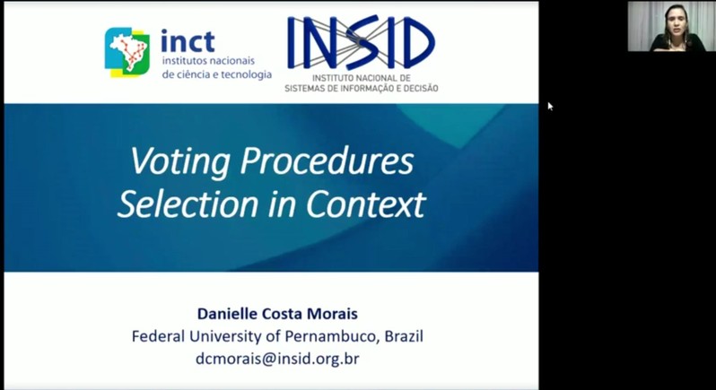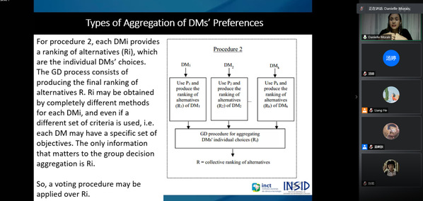 4月13日上午,巴西伯南布哥联邦大学教授Danielle Costa Morais受学院智能决策与风险分析研究所邀请,在腾讯会议作了题为“Voting Procedures Selection in Context”的学术报告。国产直播 教授徐海燕等教师及部分硕、博研究生线上参加了Danielle Costa Morais的报告分享,本次学术报告由徐海燕主持。