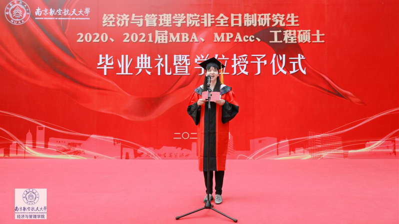 回顾往昔,一群怀揣理想的青年人齐聚南航,在将军路、明故宫美丽的校园追逐梦想,潜心求学,充分展示自己的经管芳华。他们秉承“智周万物、道济天下”的校训,践行“团结、俭朴、唯实、创新”的校风,牢记“尚德励学,筹策济世“的院训,坚定理想信念,志存高远。如今,他们即将开启全新的人生篇章,在更广阔的天地里展翅翱翔。祝愿南航MBA教育中心所有毕业生继续脚踏实地,砥砺前行,用时间和汗水浇灌梦想,在祖国最需要的地方绽放出绚丽的青春之花!
