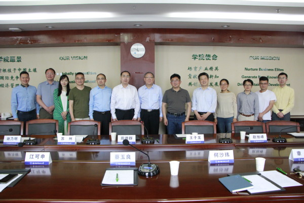 周德群代表学院欢迎蔡玉良来院指导,并简要介绍学院发展、学科建设、特色研究方向等情况。蔡玉良介绍了个人经历、我国水泥行业发展历程、当前水泥行业面临的机遇与问题等。