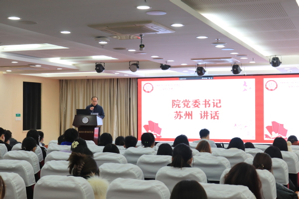 为深入开展党史学习教育,全面贯彻学习党的十九届六中全会精神,11月24日中午,国产直播 于学院A0305报告厅举办了“回望百年星火中国,坚守时代青年担当”主题信仰公开课。院党委书记苏州、党委副书记胡苹及本科生、研究生团员代表出席本次活动。