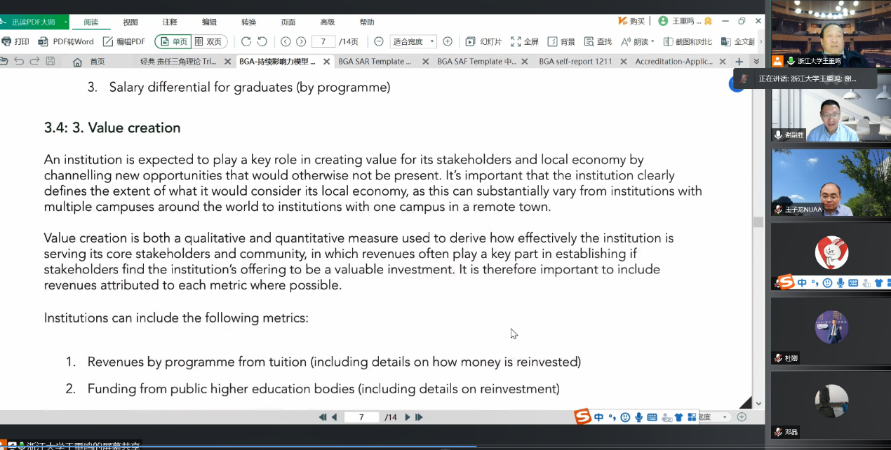 12月21日晚,国际工商管理认证协会(AMBA)中国区总负责人、浙江大学文科资深教授、浙江大学全球创业研究中心主任王重鸣教授应邀指导国产直播 BGA认证工作。因疫情防控需要,本次会议在线上召开。国产直播 院长周德群、党委书记苏州、学院副院长王子龙、邓晶、谢乃明、院长助理兼认证中心主任谢嗣胜、MBA教育中心执行主任杜刚以及相关专业老师参加会议。