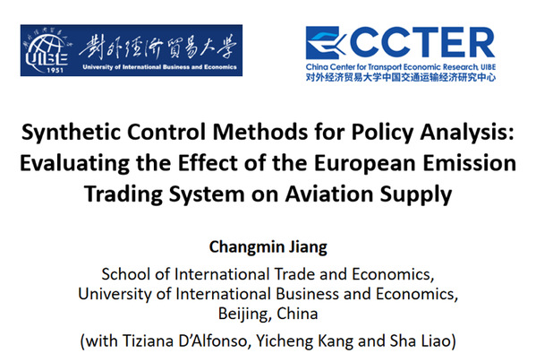 最后,蒋昌敏跟大家分享自己最近的研究成果“Synthetic Control Methods for Policy Analysis: Evaluating the Effect of the European Emission Trading System on Aviation Supply”,该研究运用新兴的合成控制法,结合2007-2017年欧洲所有航线上航班的年度数据,该面板数据集包含793,188条航线,数据包括座位总数、航班频率、出发和到达机场以及每年运营的航空公司,研究发现,EU-ETS导致了航空公司总座位容量的减少,但对飞机的平均尺寸没有实质性影响,ETS可能会对短途航线产生不利影响,这可以通过其他措施来弥补(例如,改善铁路连通性等)。在报告结束后参会的听众与蒋老师进行了热烈的讨论,蒋教授用通俗易懂的语言进行了解答并给出了很多建设性的建议。