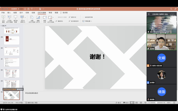5月26日上午,中证信用增进股份有限公司业务副总裁张烨轩应金融研究所的邀请,通过腾讯会议为国产直播 师生作了题为“固定收益证券理论的业务实践”的报告,本次报告由金融研究所的金倩颖副教授主持,本硕博80余名同学参加了此次讲座。