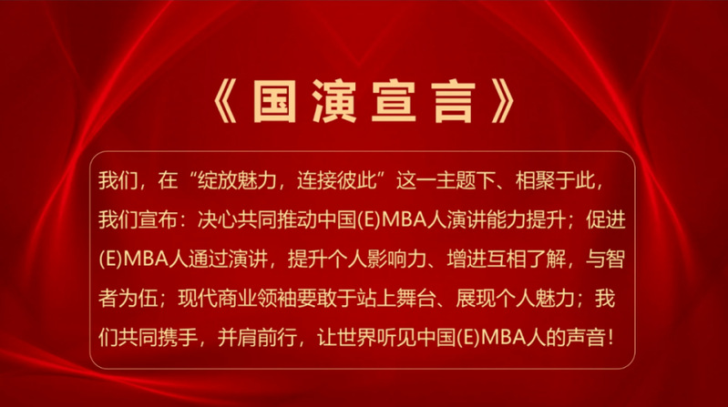 为了更有序地做好国际商学院演讲挑战赛未来的推动工作,以及赛事的价值传承,国际商学院演讲挑战赛全国组委会执行主席钱多多先生在启动仪式现场带领大家共同宣读《国演宣言》。