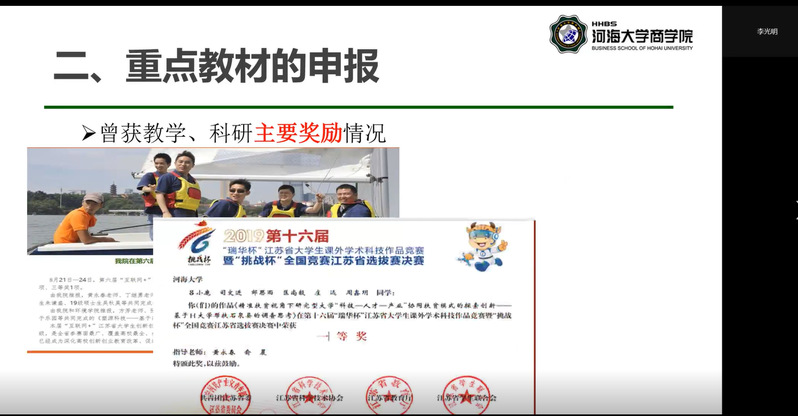 会议包含三个分支主题的报告。特邀嘉宾河海大学李光明教授详细介绍了市场营销专业重点教材的申报与建设,国产直播-国产黄色直播 丰超和宋连莲两位老师分别介绍了青年教师视角下本科生教学与培养中的“得与失”、师生互动提问式教研模式与开展方案,从市场营销专业的教学和教研角度分享了专业育人方案。系列主题汇报的内容各有侧重点,干货满满,吸引了北京工商大学、西南政法大学、河海大学、淮阴师范学院、南京工业大学等多所兄弟院校的师生参与。