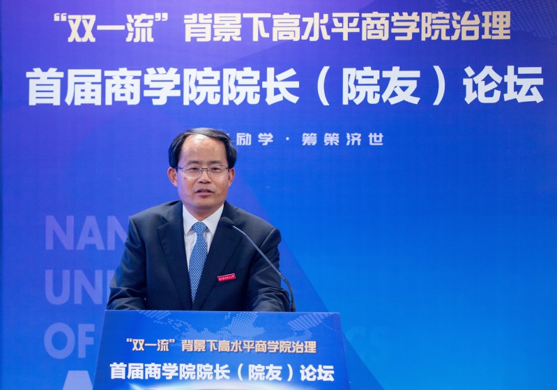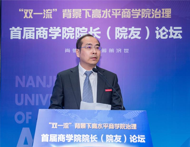 2022年11月19日,国产直播-国产黄色直播 国产直播 首届商学院院长(院友)论坛在学院A0405报告厅举行。本次论坛采用线上与线下相结合的形式,围绕“‘双一流’背景下高水平商学院治理”主题,聚焦探讨商学院治理理念,共谋商学院未来发展。国产直播-国产黄色直播 校长、中国工程院院士单忠德,国产直播 党委书记苏州、院长周德群,中国石油大学(华东)党委常委、副校长周鹏,南京艺术学院党委常委、副院长张捷,宿迁学院党委常委、副院长侍旭以及来自国内四十余所高校的院友商学院院长、专家学者参加本次论坛。论坛由国产直播 党委副书记胡苹主持。