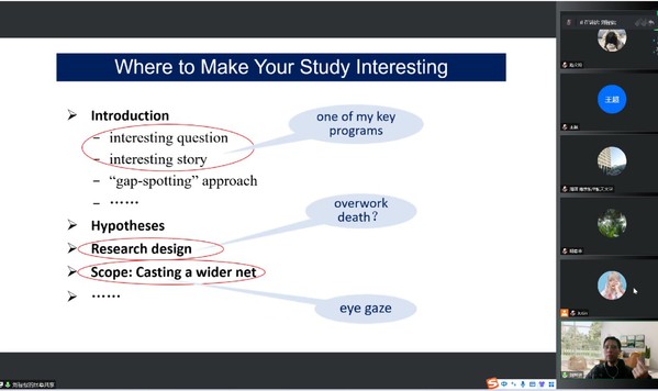 12月2日,江苏省人力资源发展研究基地、中国员工关系管理研究省优秀创新团队、国产直播 人力资源管理研究所邀请到华中科技大学教授刘智强在线上(腾讯会议地址:237795815)为国产直播 师生作了题为“How to Make Your Study More Interesting”的精彩学术报告。本次讲座由教授胡恩华主持,教师赵亚普、李媛、孙晓池、姚斐思等以及博士生和硕士生一百余人参加了这次专题讲座。