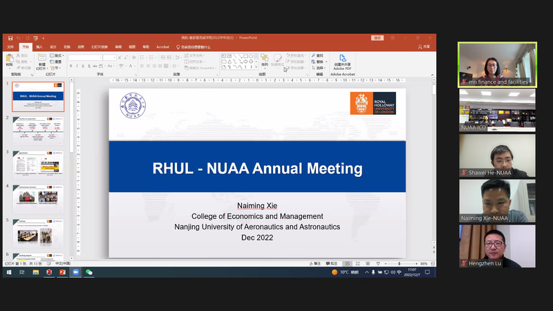 谢乃明从人才培养、学术交流与教学科研等方面介绍了双方2022年的合作情况,重点总结了双方获批留基委创新型人才国际合作培养项目和国别和区域研究人才支持计划的人员派出情况,并对霍洛威为我校国产直播师资和人才培养提供的支持表示感谢。他指出,学院非常重视与霍洛威的合作伙伴关系,希望双方能够进一步加强交流合作,共同创造更加丰硕的成果。